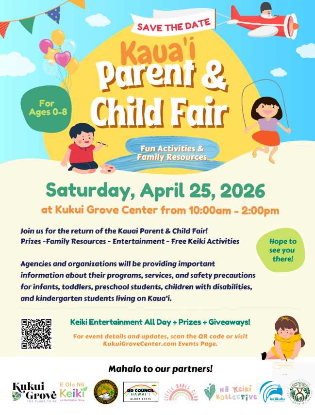 The Kauai Parent and Child Fair is a free event designed to connect families with resources and activities for children aged 0-8.